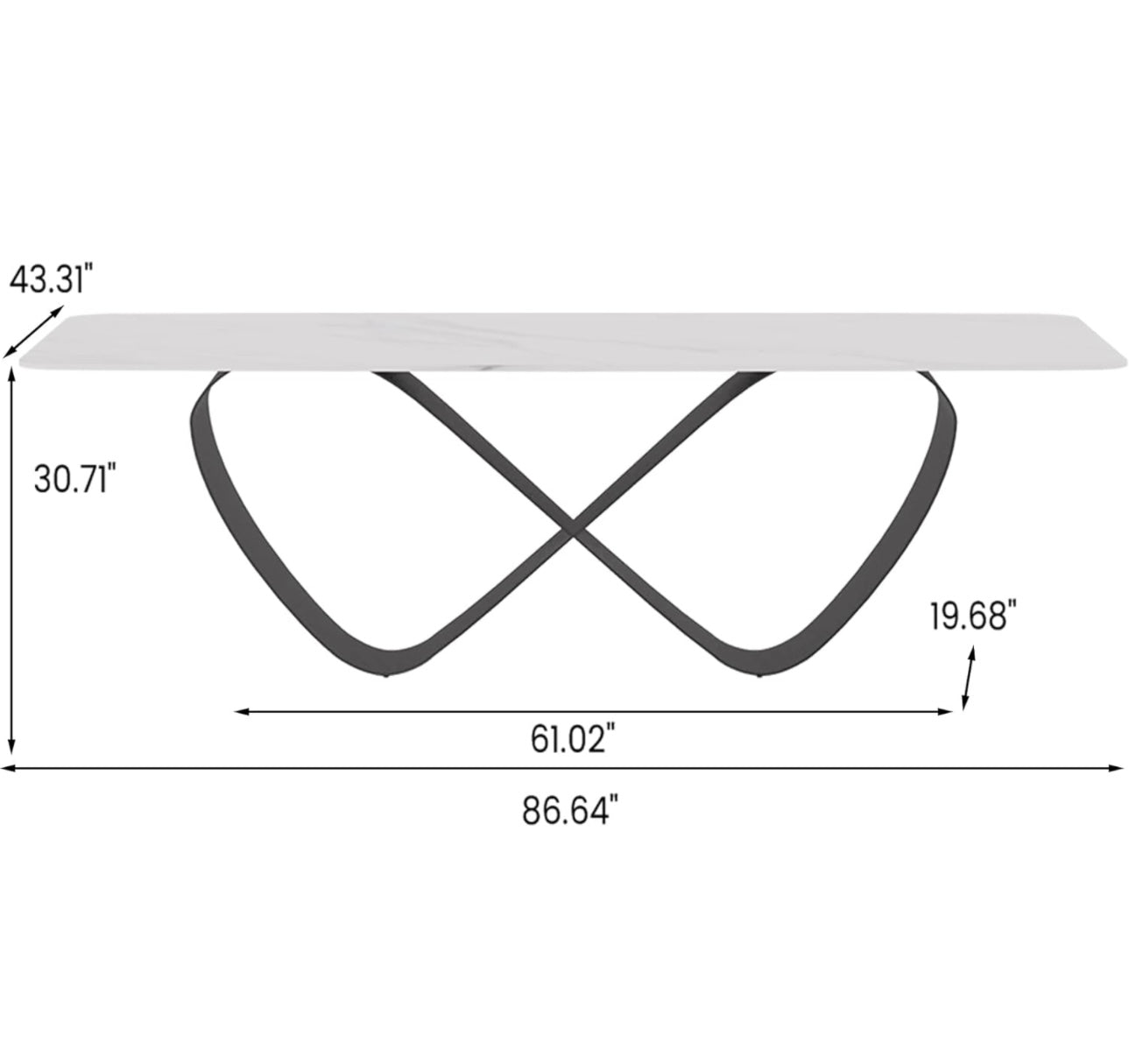 87” Modern Dining Table for 8, Rectangle Dining Table Large, Sintered Stone Dining Table with Butterfly Shape Carbon Steel Base, White Kitchen Table for Dining Room Table