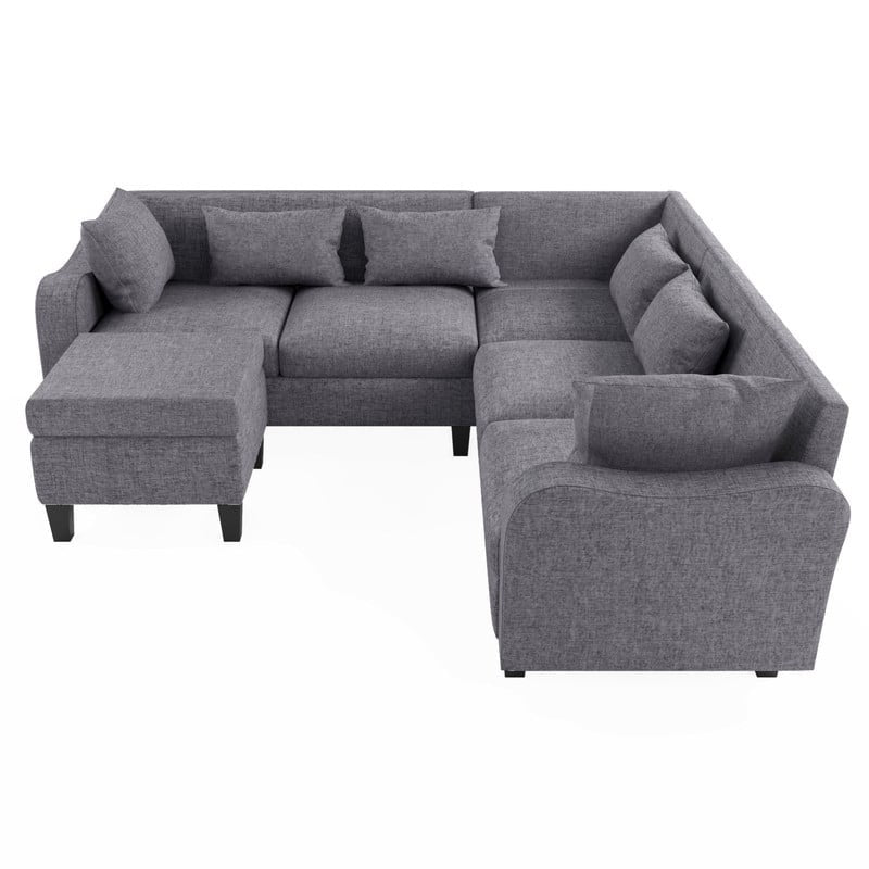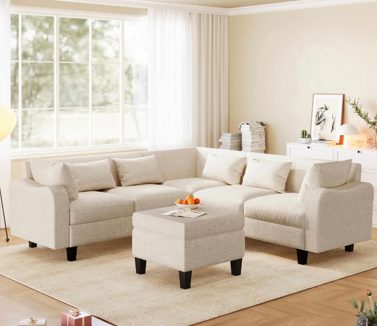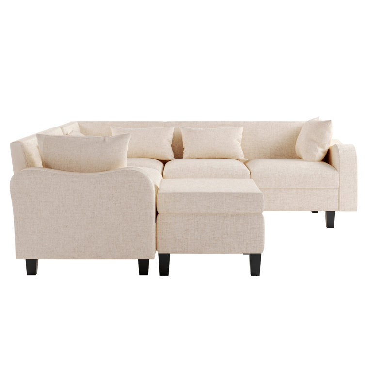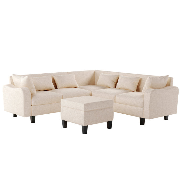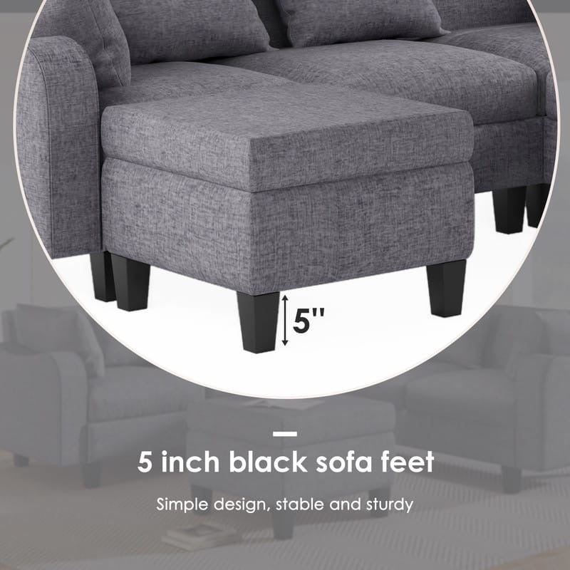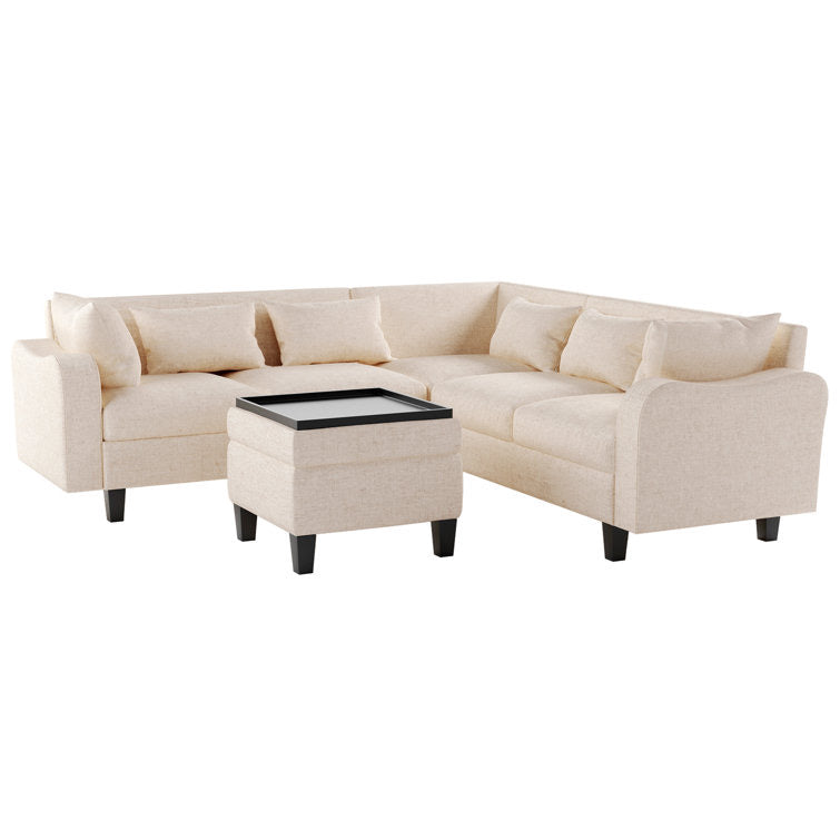 87" Modern Linen L Shape Sectional Sofa with Coffee Table,Sectional Couch with Storage Ottoman