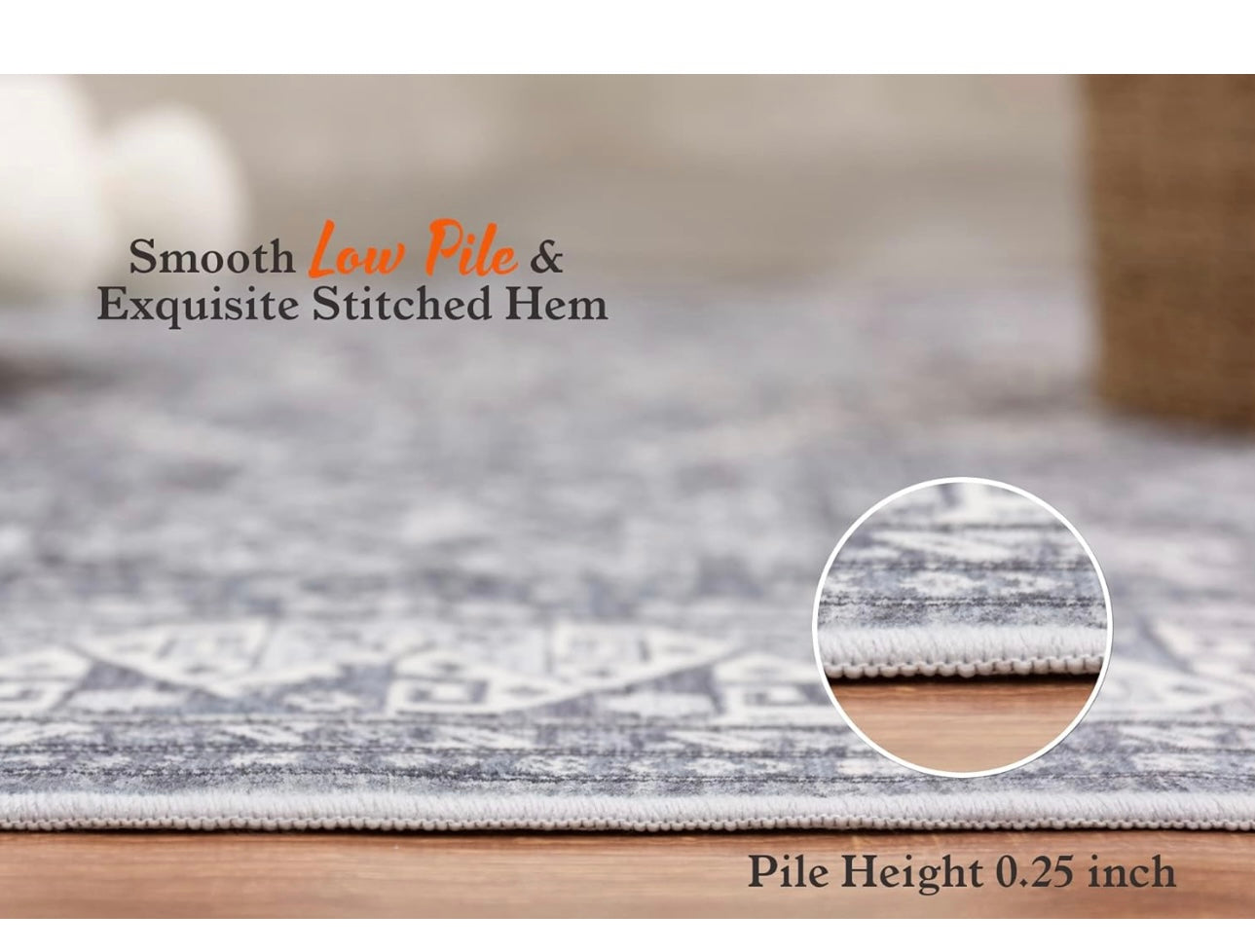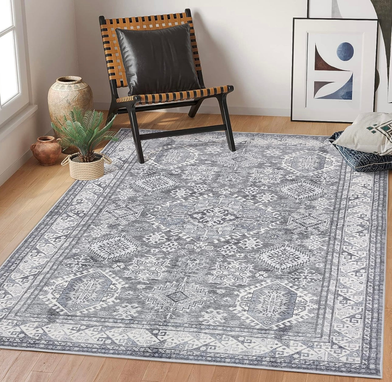 9x12 Area Rug - Stain Resistant Washable Rug, Anti Slip Backing Rugs for Living Room, Vintage Tribal Area Rugs (TPR12-Grey, 9'x12')