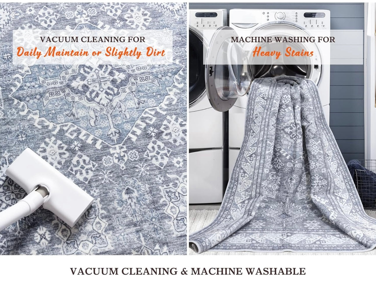 - Easy Care - Vacuum regularly to keep the area rugs clean on daily use. The area rug is machine washable, machine dry or air dry with no heating setting only. Mild detergent, no bleach or fabric softener.
