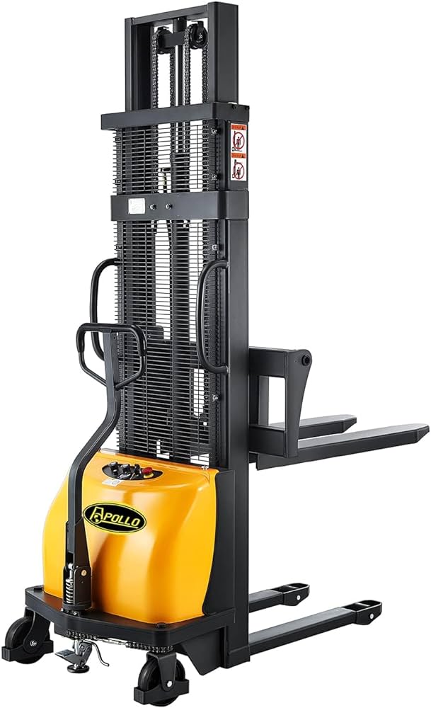 Apollo Semi-Electric Pallet Stacker Fixed-Legs Pallet Forklift Jack Material Lifter with Fixed Legs 2200lbs Capacity 118" Lifting Height for EU Pallet