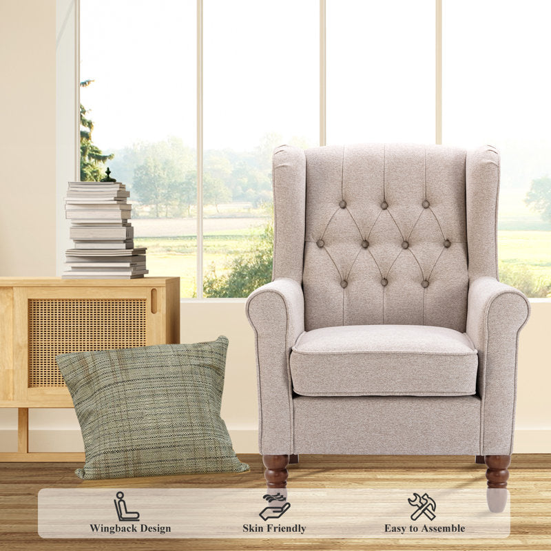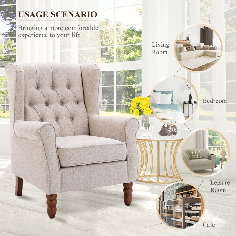 Button-Tufted Small Wingback Accent Chair with Rolled Arm and Thick Padded Cushion