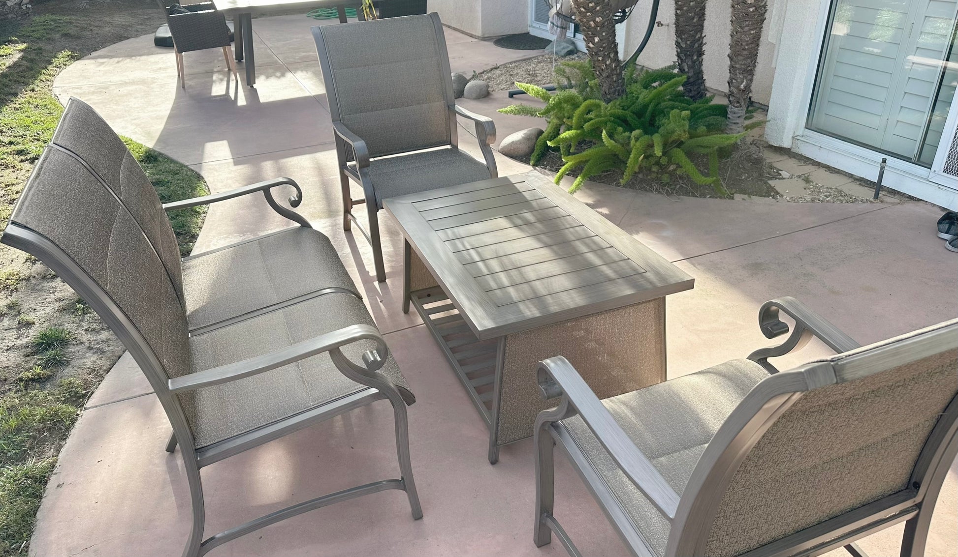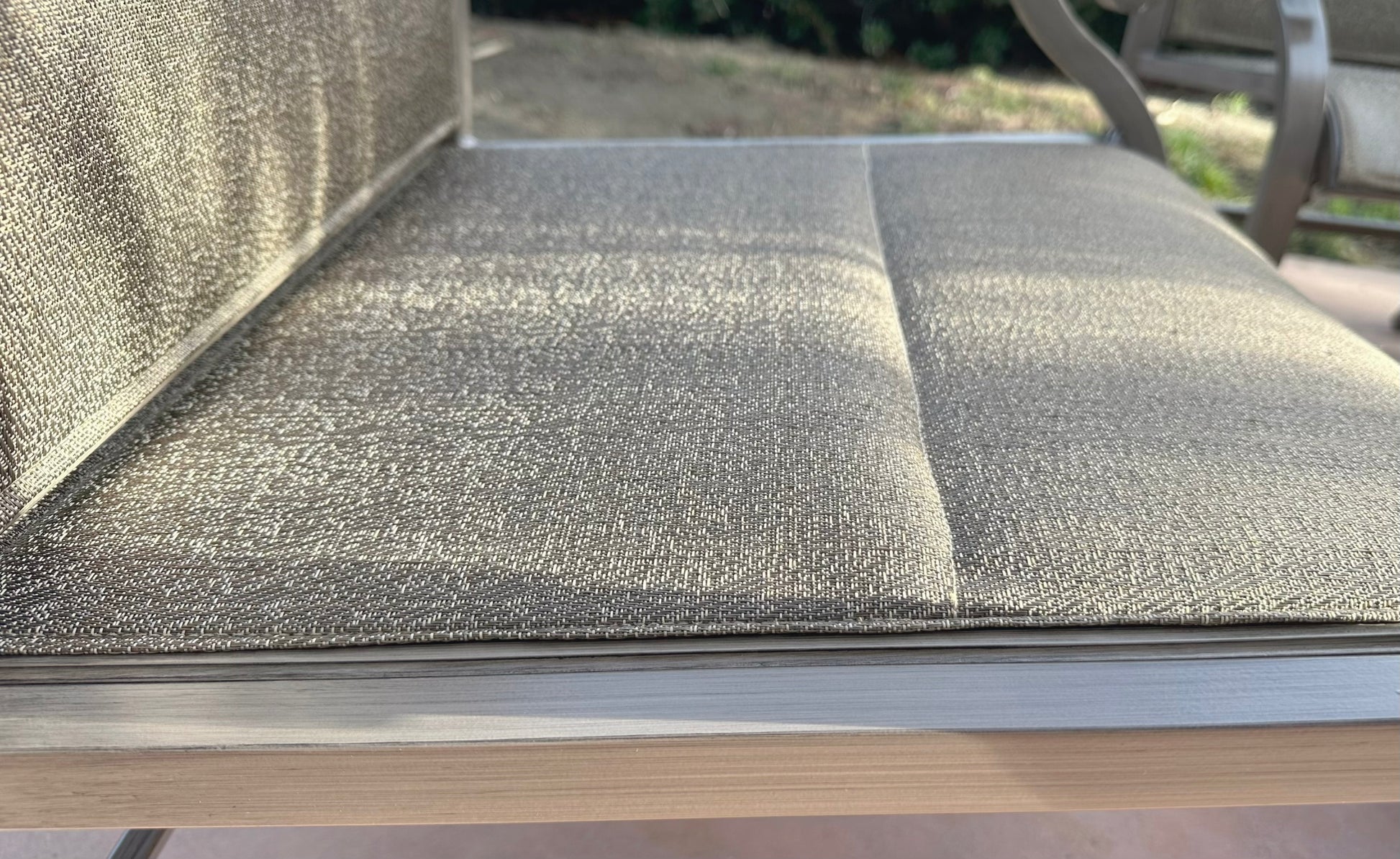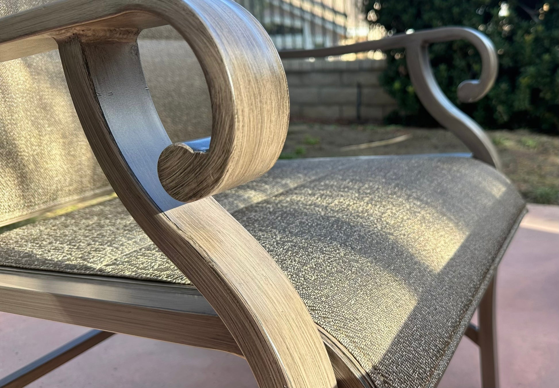 All-weather brushed champagne Sunbrella sling for extra comfort