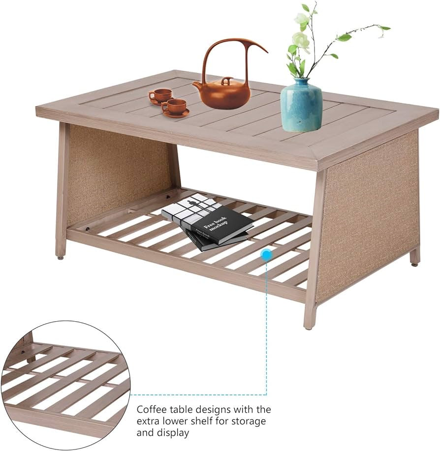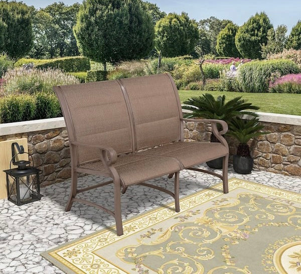 Champagne Gold 4-Piece Cast Aluminum Patio Rectangle Outdoor Dining Set with Love Seat for Garden, Yard