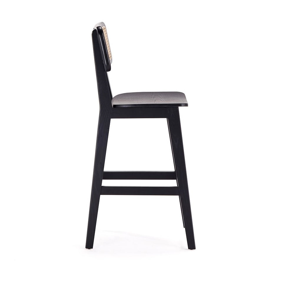 Manhattan Comfort Versailles Black & Natural Cane Counter Stool.Designer Modern Wood Bar Stool with Natural Cane Back 30”Height