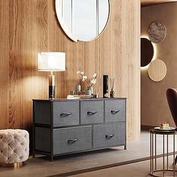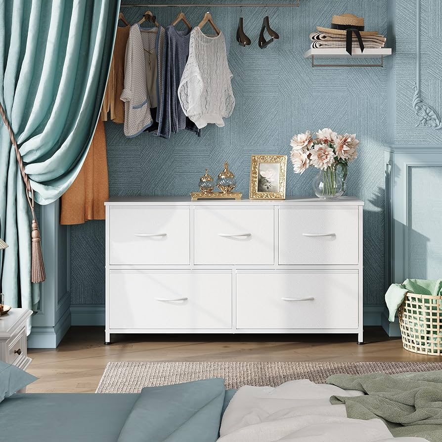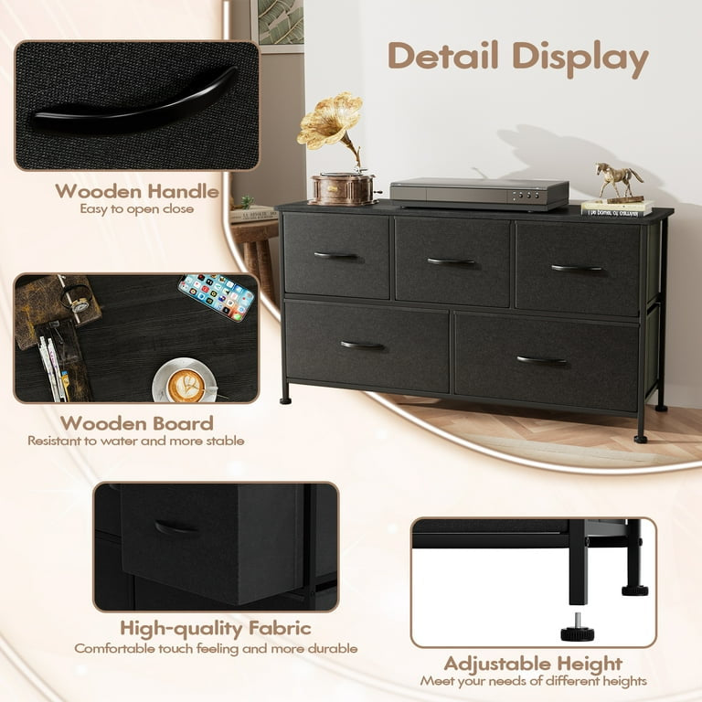 Dresser for Bedroom with 5 Drawers, Wide Chest of Drawers, Fabric Dresser, Storage Organizer Unit with Fabric Bins for Closet, Living Room, Hallway