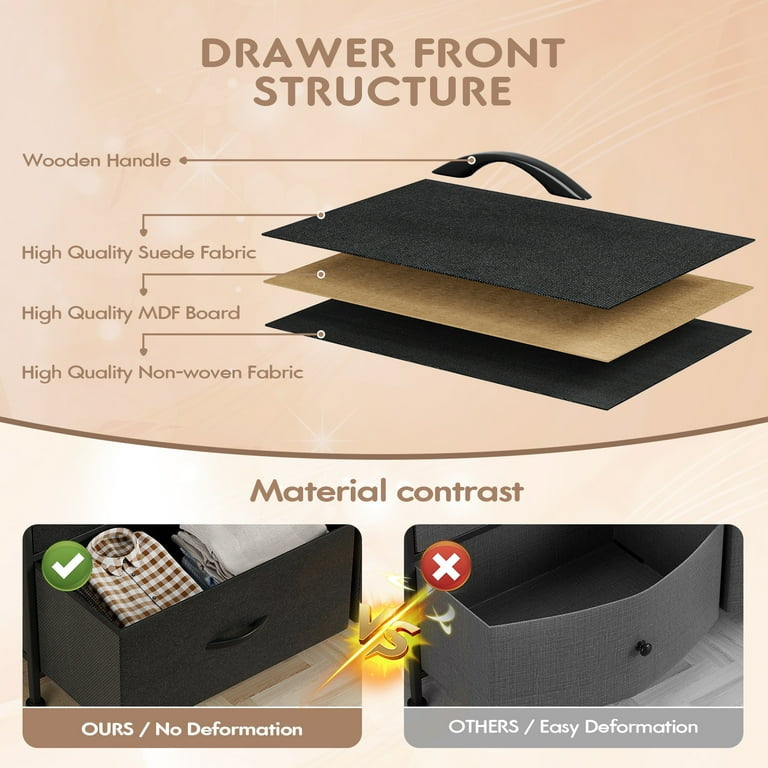 - STURDY ORGANIZER UNIT: Strong steel frame offers stable support and ensures years of use; Non-woven fabric bins are easy to clean. The dresser can also be used as TV stand for small-size TV.