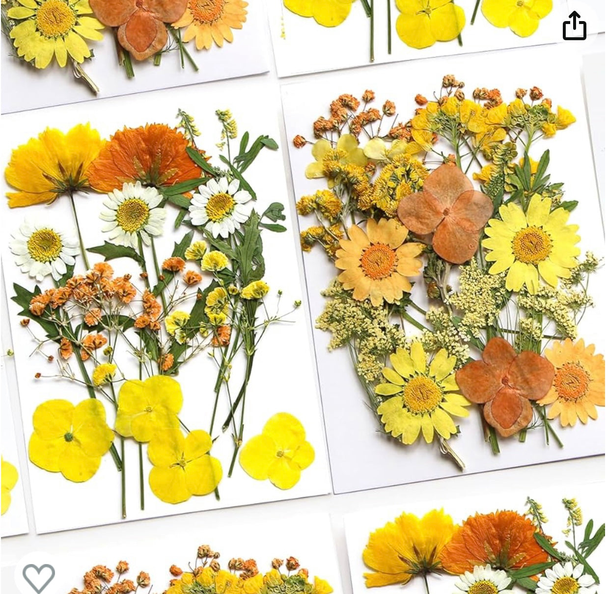 - [Authentically Natural] - The flower pressing kit has 33 pcs / 2 sheets of delicate and beautiful dried pressed flowers and leaves. These yellow and orange dried plants are preserved in their most vibrant state - vibrant colors, intricate details, and shapes, making them ideal for various DIY crafts.