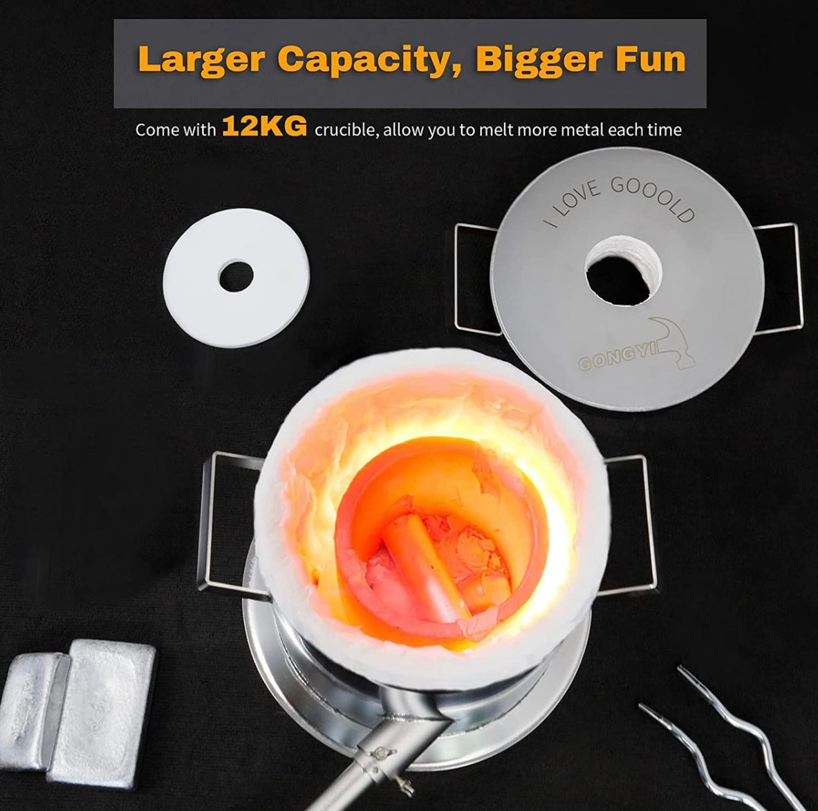 GONGYI 12KG LARGE Capacity Deluxe Kit Propane Melting Furnace Smelter Full Stainless Steel 304 for Scrap Metal Recycle Melting Copper Aluminum Includes Crucible and Tongs
