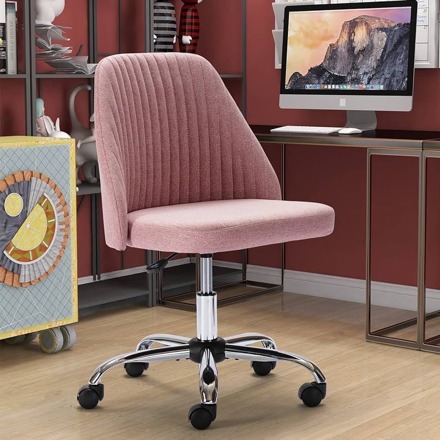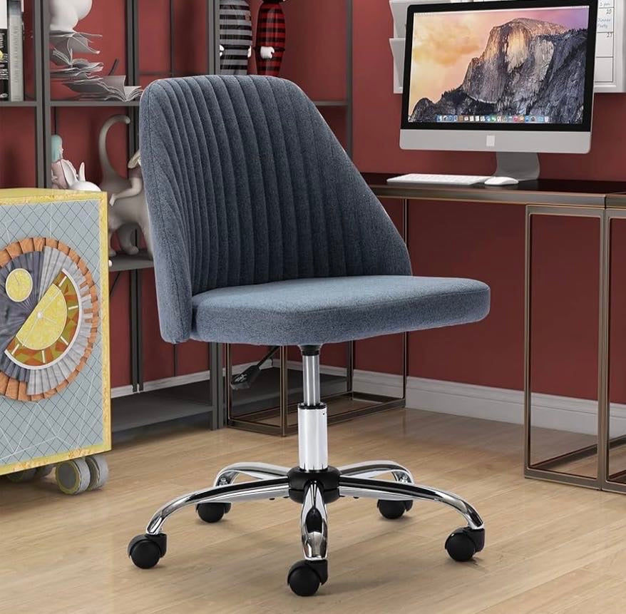 Home Office Chair, Mid-Back Armless Twill Fabric Adjustable Swivel.