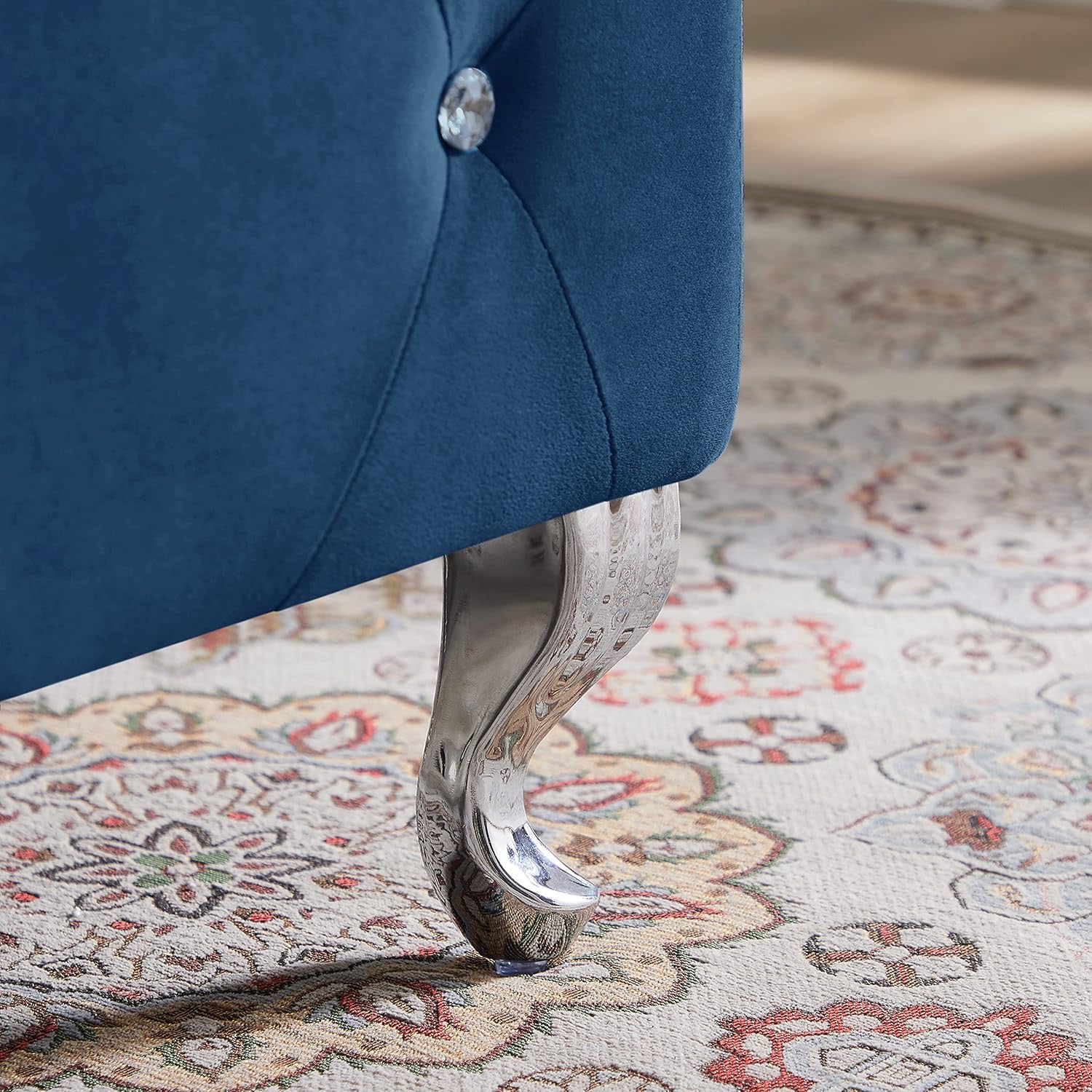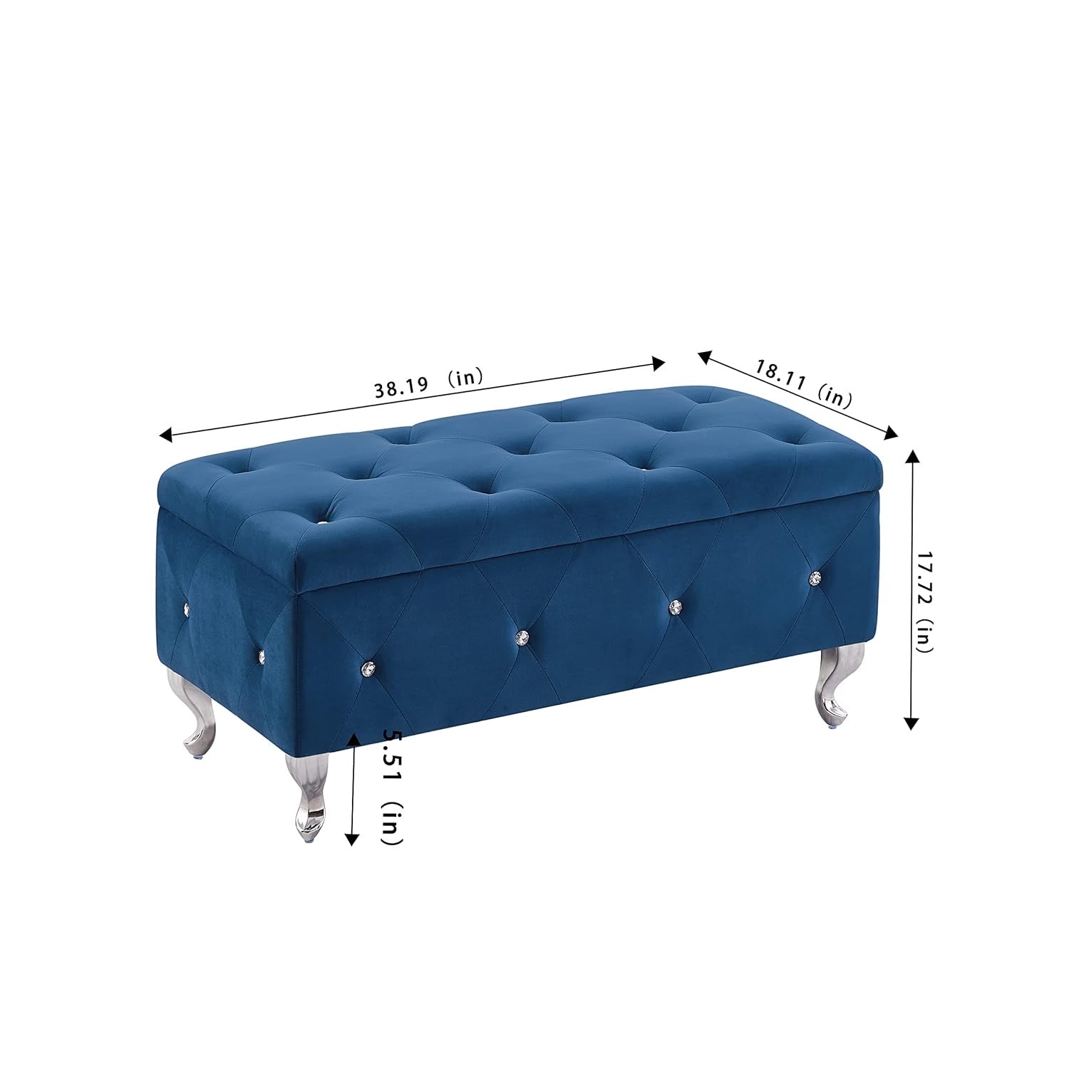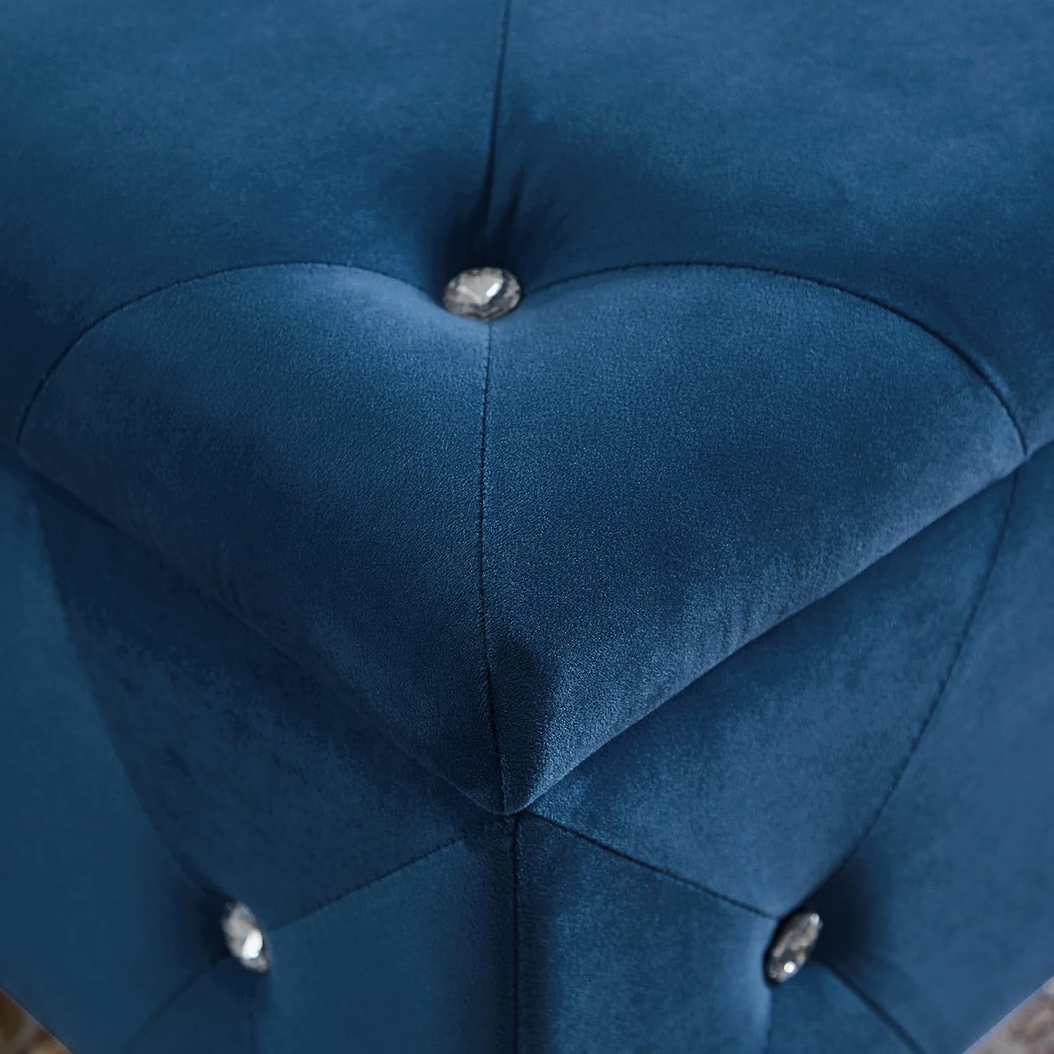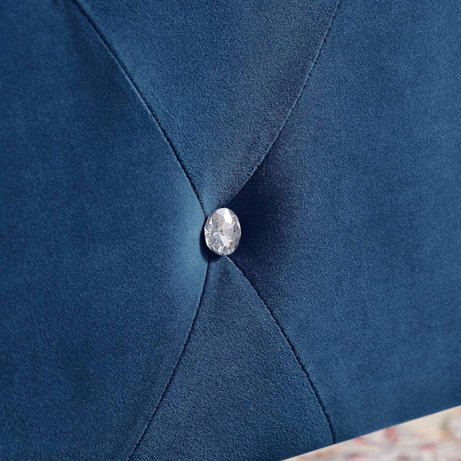 Home Storage Bench, Velvet Button and Diamond Design Bedside Stool, Suitable for Bedroom Entry and Living Room (Blue)