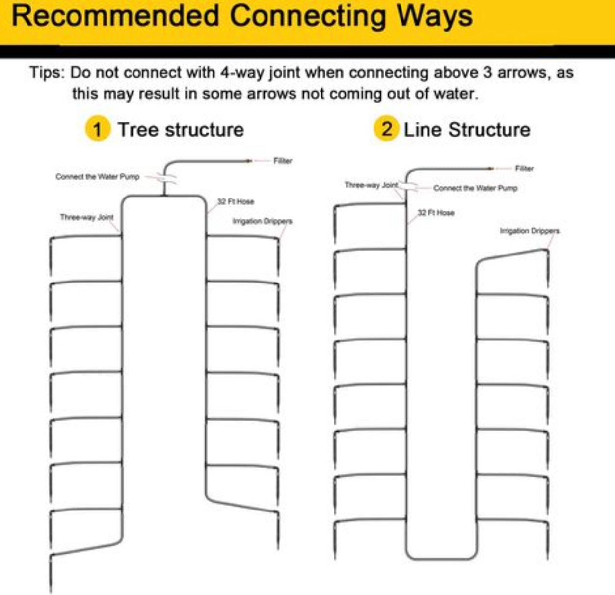 🌷【Easy to DIY】 A roll of 33ft pipe is provided, which can be cut to the desired length as required. T joints connect water sources and plants by connecting water pipes to achieve simultaneous irrigation. The automatic drip irrigation system kit can irrigate 15 pots of houseplants at the same time;