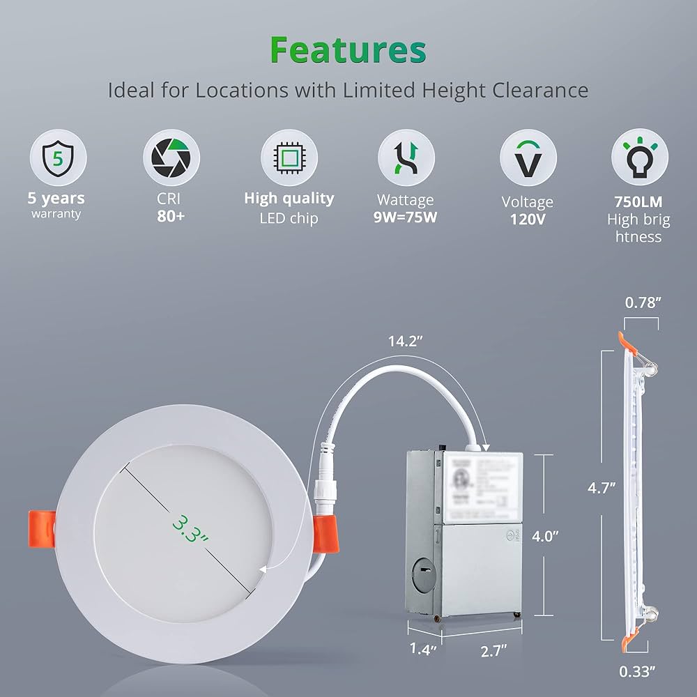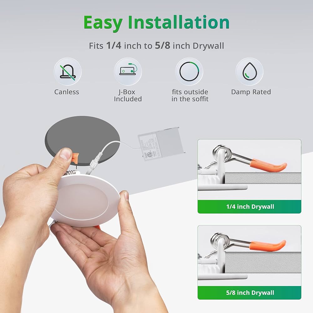 - ✅ Safety You Can Trust: These canless LED recessed lights are IC-rated, ensuring that there's no risk of direct contact with insulation, making them safe for use in ceilings. Rest easy, knowing that the risk of fire hazards is eliminated. Additionally, the ETL certification guarantees the overall safety of both the light and driver.