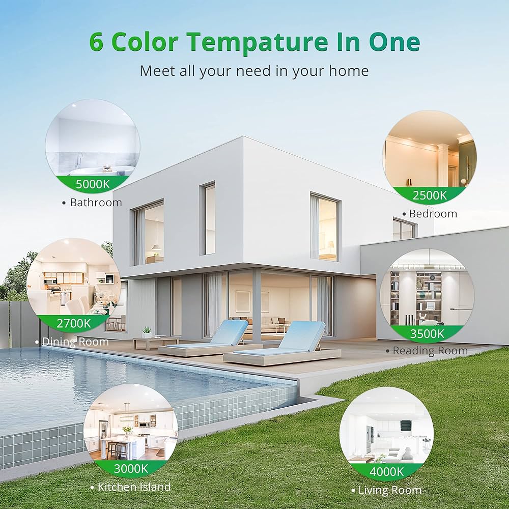 - ✅ Adjustable Color Temperature: Enjoy the flexibility of 6 color temperatures (2500K, 2700K, 3000K, 3500K, 4000K, 5000K) to set the perfect ambiance. Easily switch between these options using the intuitive J-box control. Say goodbye to the inconvenience of returning recessed lights due to mismatched color temperatures.