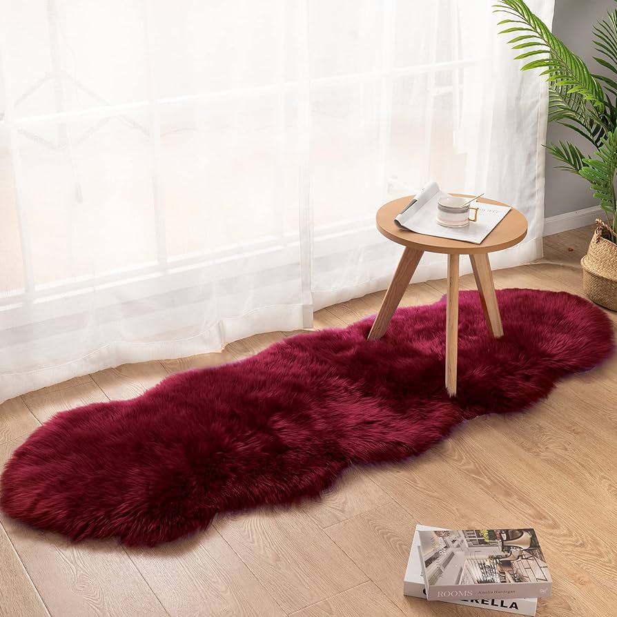 Luxury Soft Faux Sheepskin Fur Chair Couch Cover Area Rug Bedroom Floor Sofa Living Room (2 x 6 ft, Burgundy)