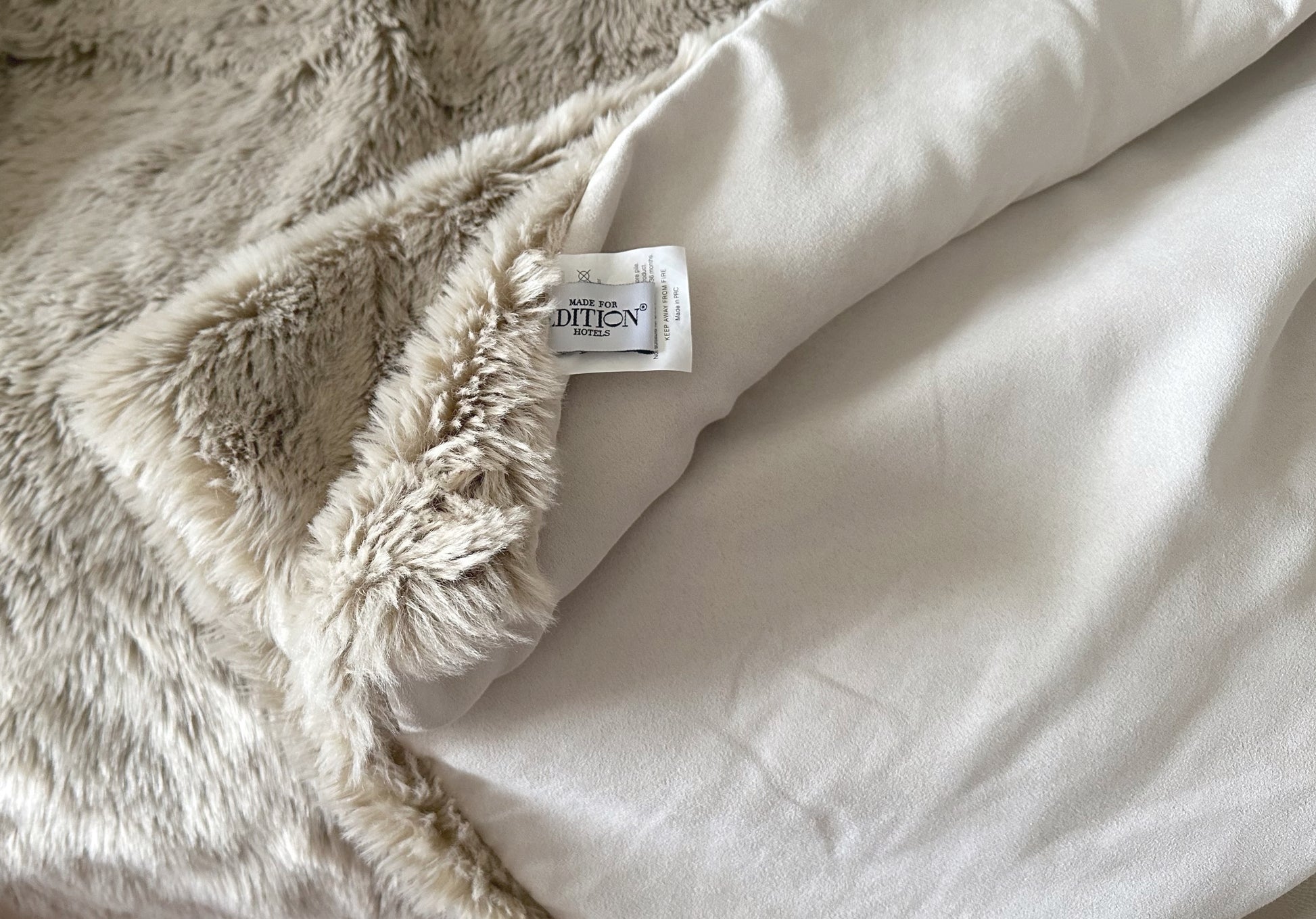 Relax in style with this luxurious faux fur throw with extra soft beige suede-like lining, made exclusively for The Times Square EDITION. Staying in bed never felt so good when you have one of our oh-so-comfortable faux fur throws as your companion.