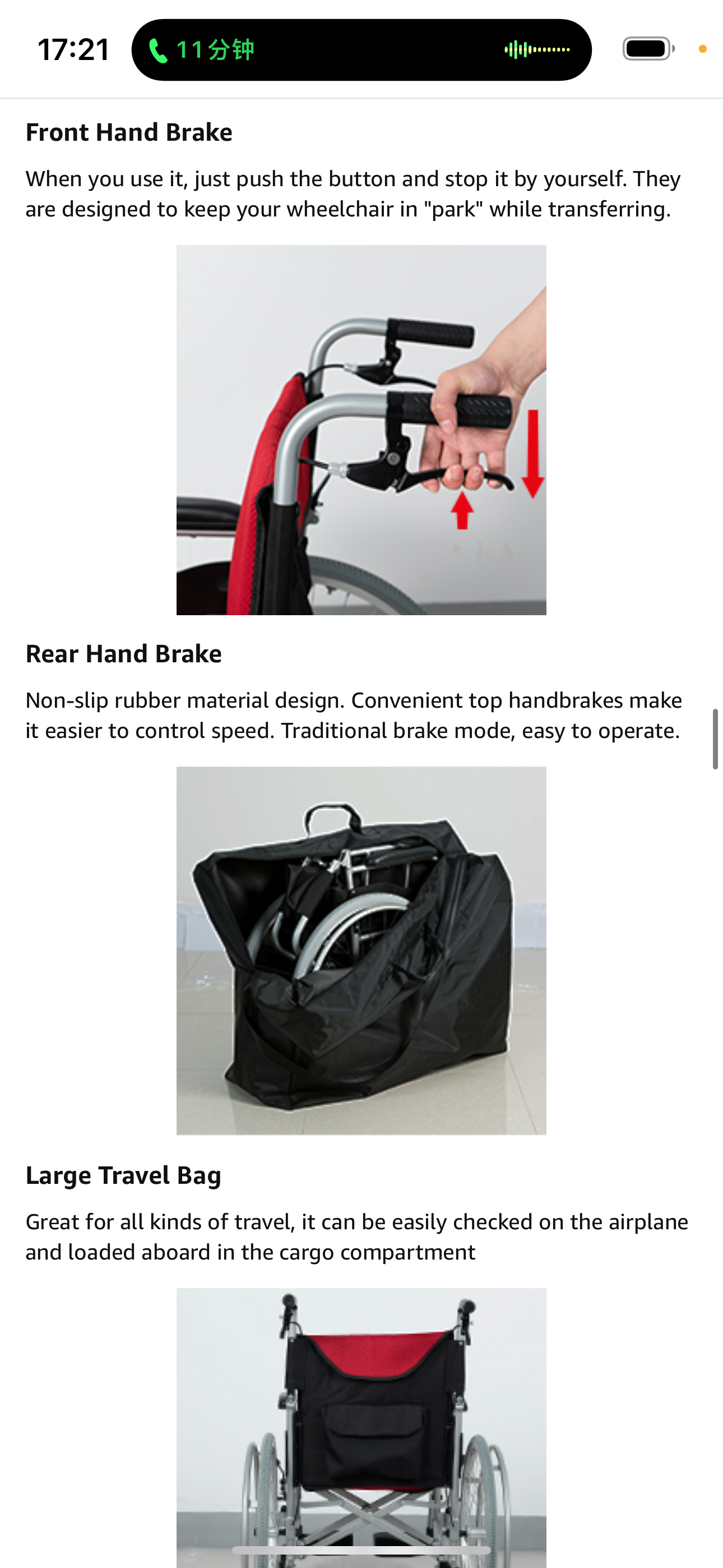 Magnesium Wheelchair 21lbs Self-propelled Chair Portable and Folding 17.5”