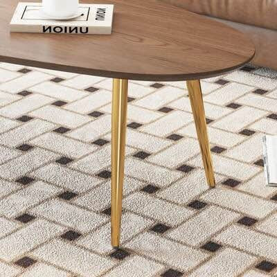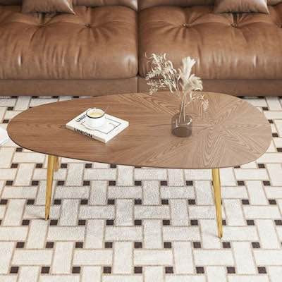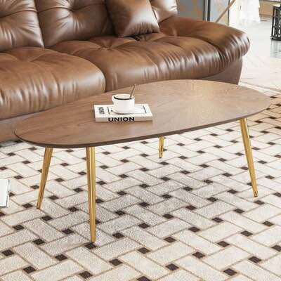 Bring modern elegance into your living space with this sleek, mid-century inspired coffee table. The smooth, oval-shaped walnut-finish top offers a warm and inviting look, while the slim, gold-finished tapered legs add a touch of glamour and stability.