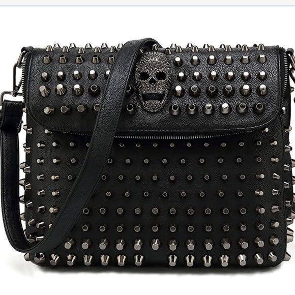 Brand New, NWT Large Vegan Leather Studded Handbag, Crossbody style purse *Material:Lamb Leather, Poly lining *Measurement: 12.5”x11”x5” Strap Drop 19.5” *One Main compartment, 2 inner slip pockets, 1 inner zipper pocket, 1 back zipper pocket *Can carry an I-pad mini or smaller *Condition: Brand New, in Packaging *No LOWBALLING, please. This is a brand new, detailed, well made bag with no defects *All items are photographed upon order and during shipping for your protection and mine