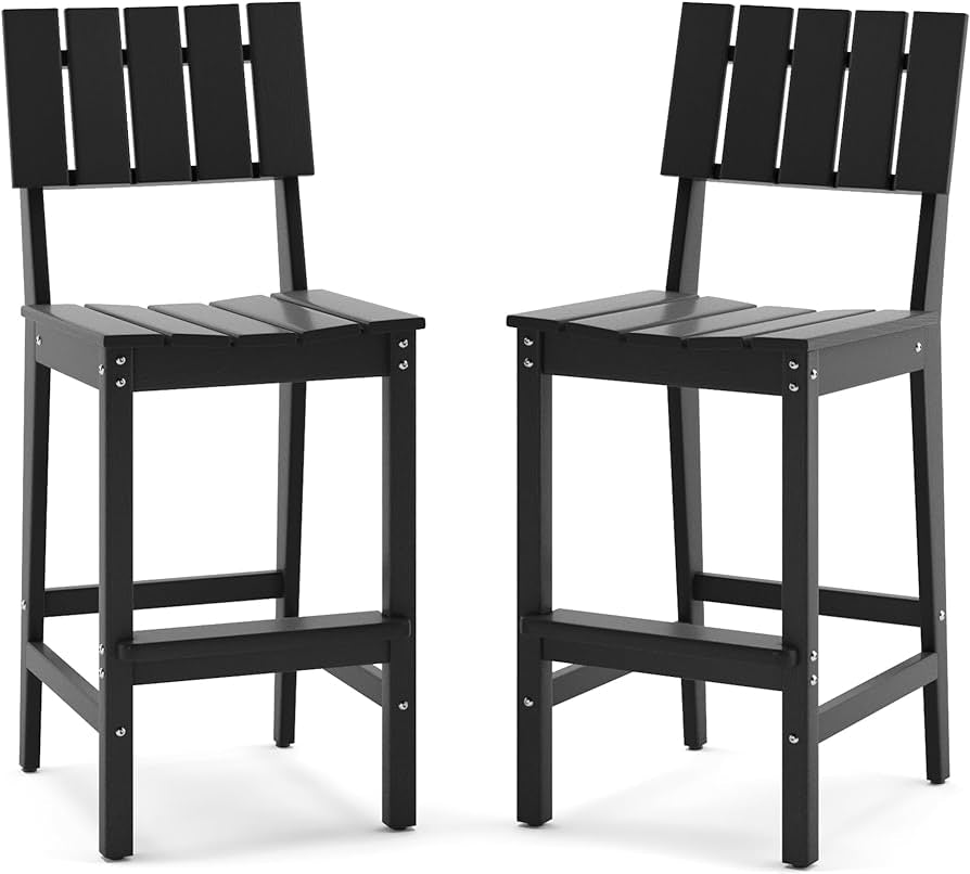 - 【🎈HDPE Material】The pub height stools are made of HDPE lumber, construct all our patio bar stools — elements like the wind, rain, sun, and snow won’t cause your bar sets to splinter, chip, crack, fade, or peel.