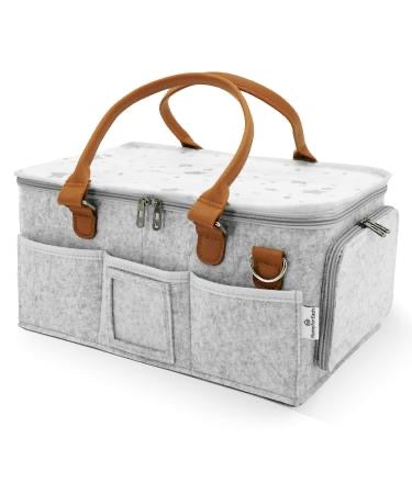 Portable Diaper Caddy Storage Bag with Roll Lid and Removable Dividers, Caddy Organizer for Nursery, Changing Table, Car and More, Travel-Friendly Baby Caddy for Infant Essentials Grey