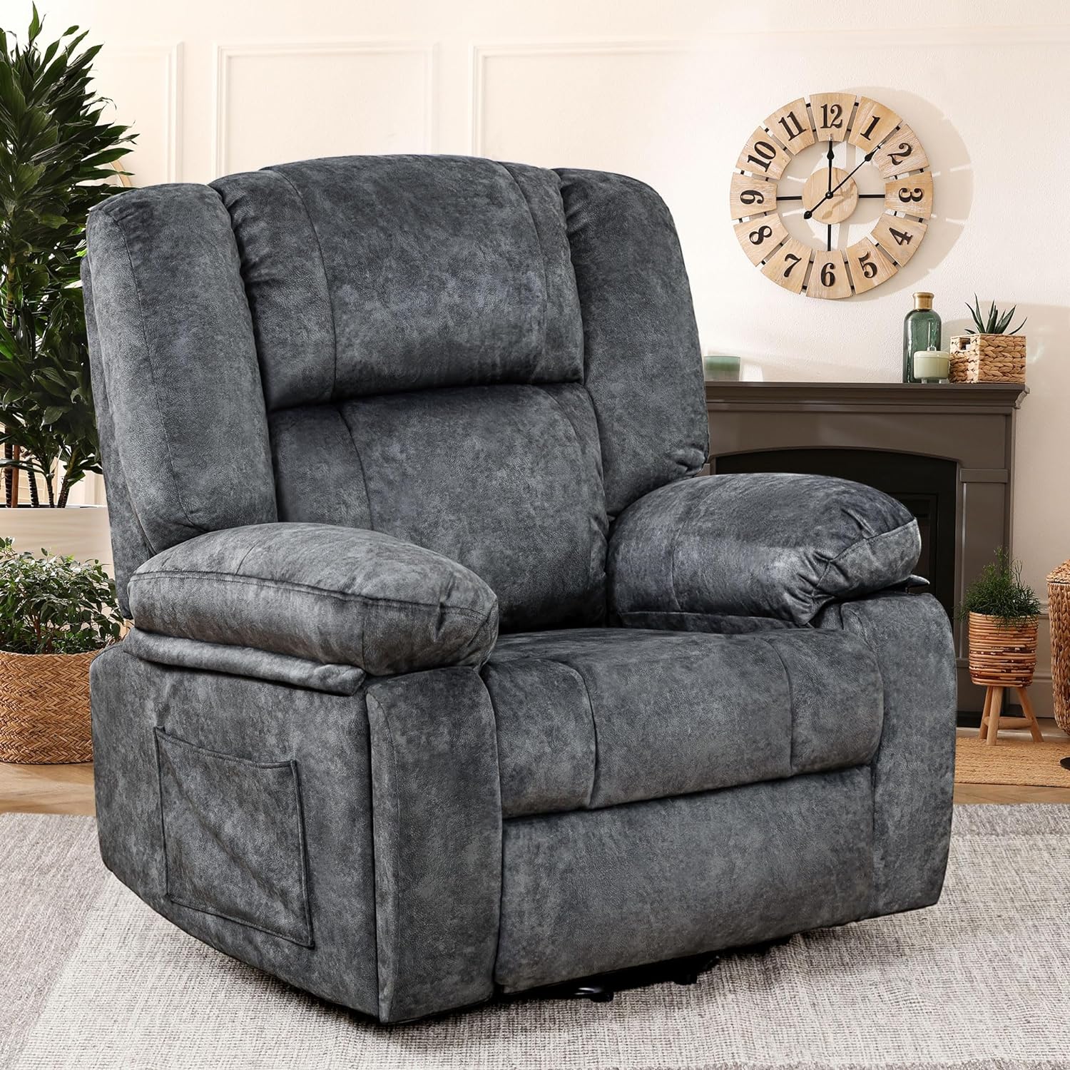 - 【Soft Support & Extra Wide Seat】This recliner chair is covered with soft velvet fabric, providing a comfortable feel. The overstuffed backrest and armrest provides strong support for your back and waist, reducing spinal pressure. Our chair seat wide is 23.6”,which is wider than most of recliner chairs, spacious seat cushion give you more comfort.