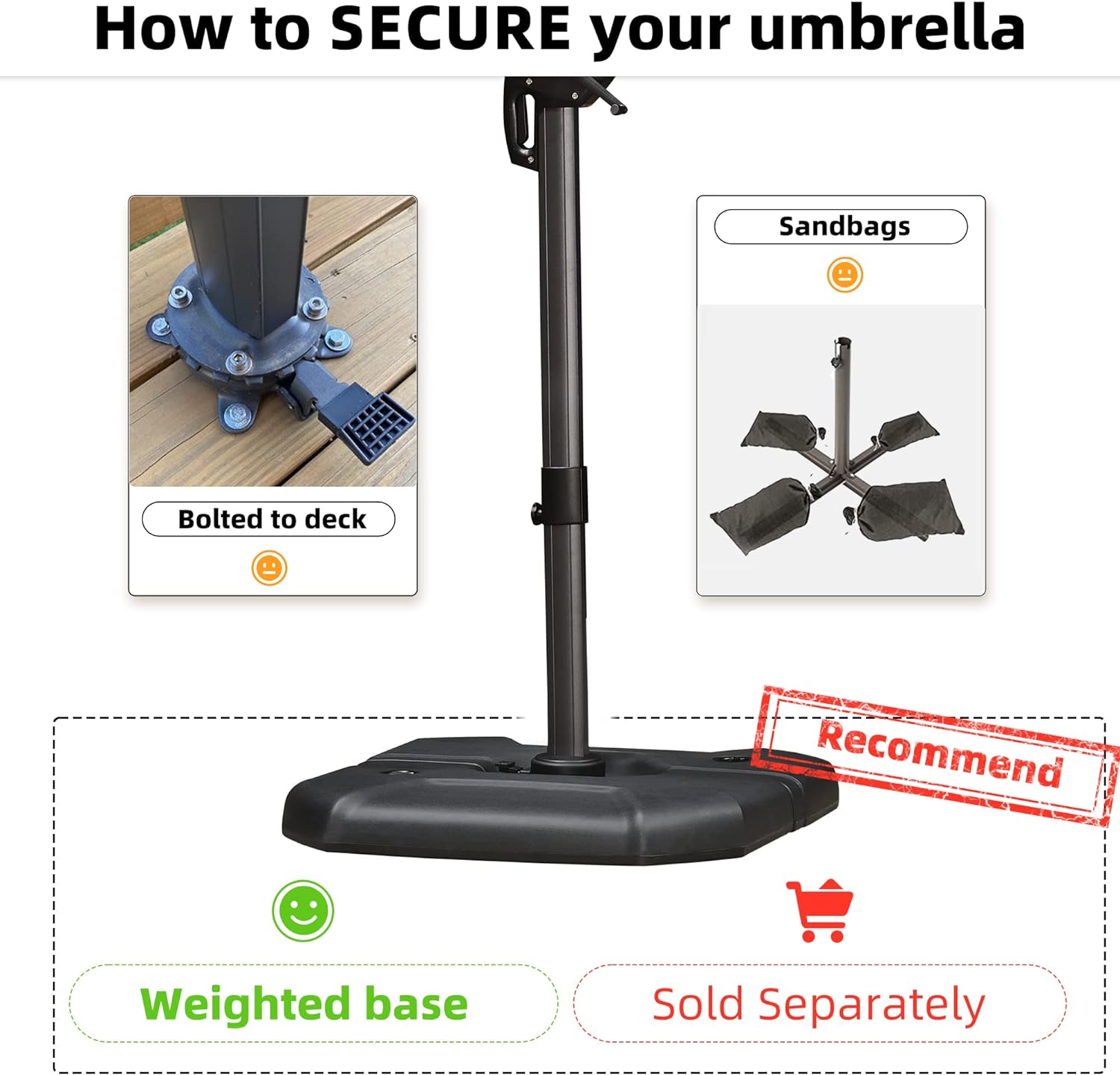 - The crank system of this cantilever umbrella makes it easy to raise and lower the canopy, the unique handle design also makes tilting the umbrella effortless, foot pedal allows for complete 360 degree rotation