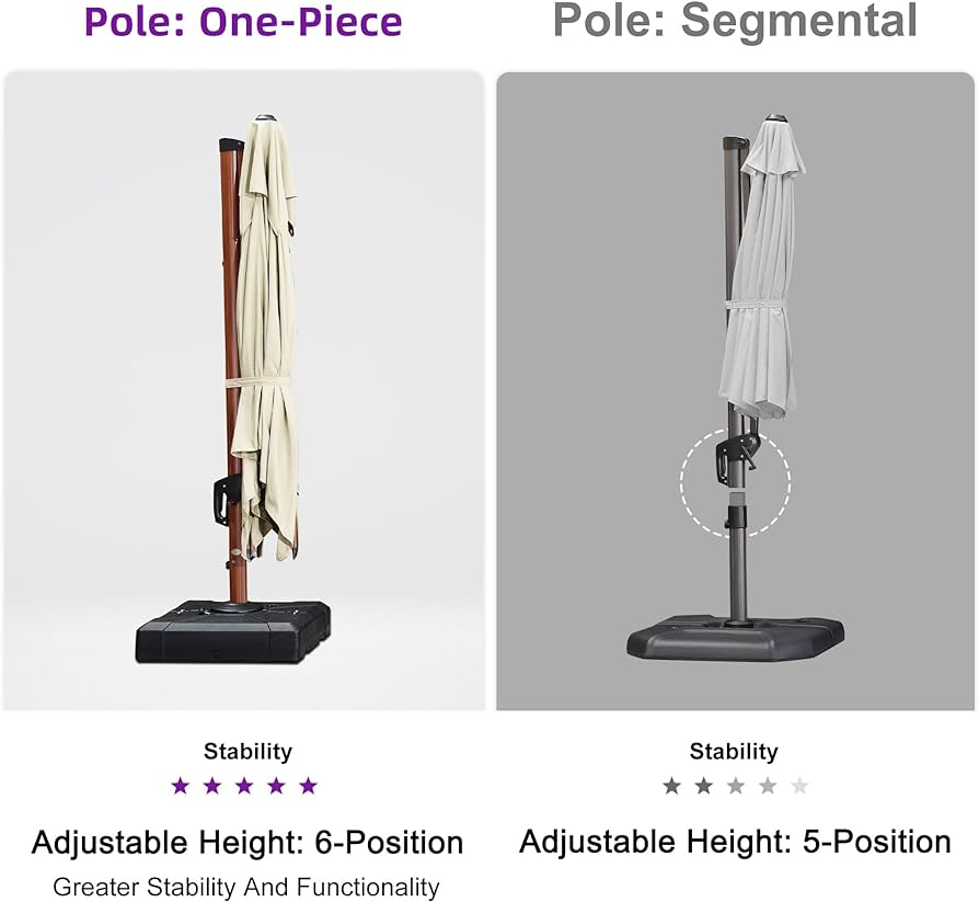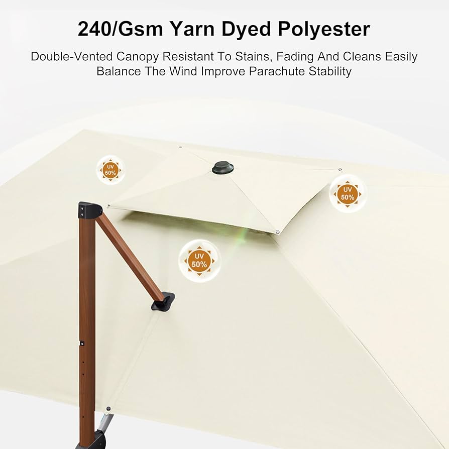 - This cantilever umbrella has unique handle design and crank system, 6 height and angle to choose, 360-degree rotation for easier shading area control