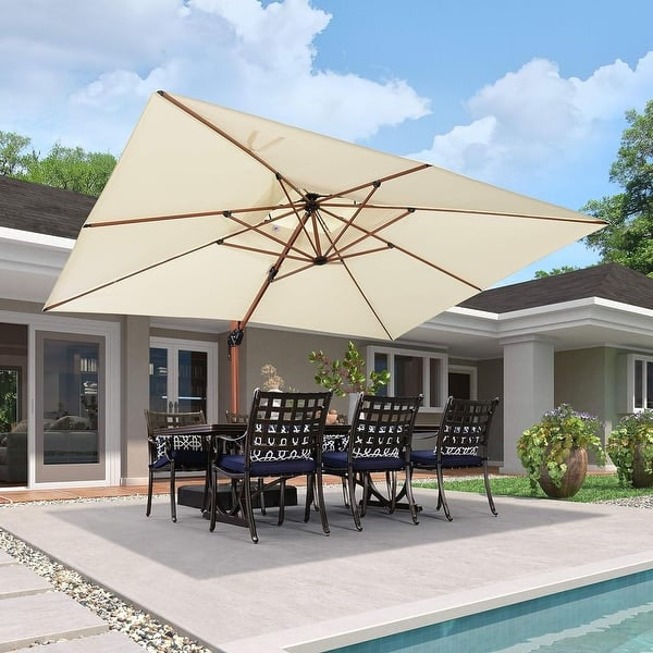 PURPLE LEAF 9 x 12ft Rectangle Wood Pattern Patio Cantilever Umbrella - Cream