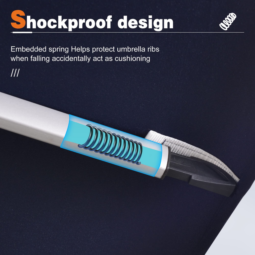 - Crafted from high-quality 240/gsm yarn-dyed polyester fabric, this umbrella is both UV-resistant and water-repellent, ensuring long-lasting colorfastness.