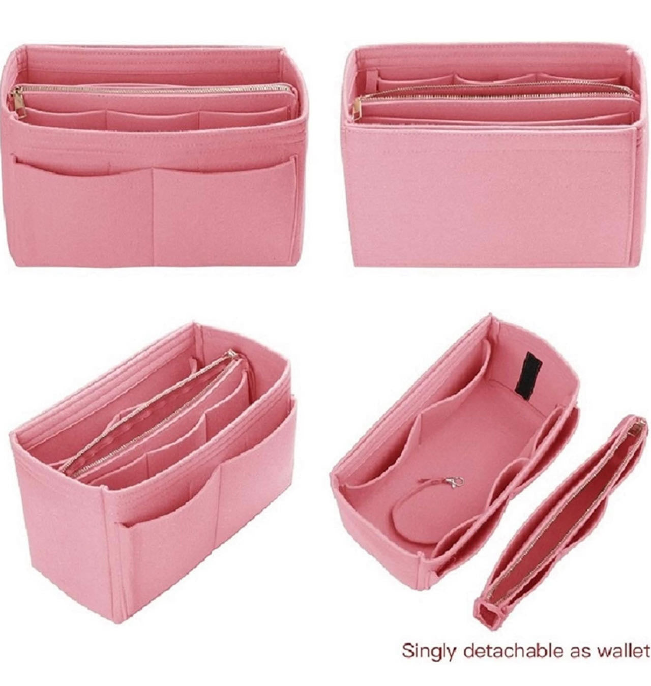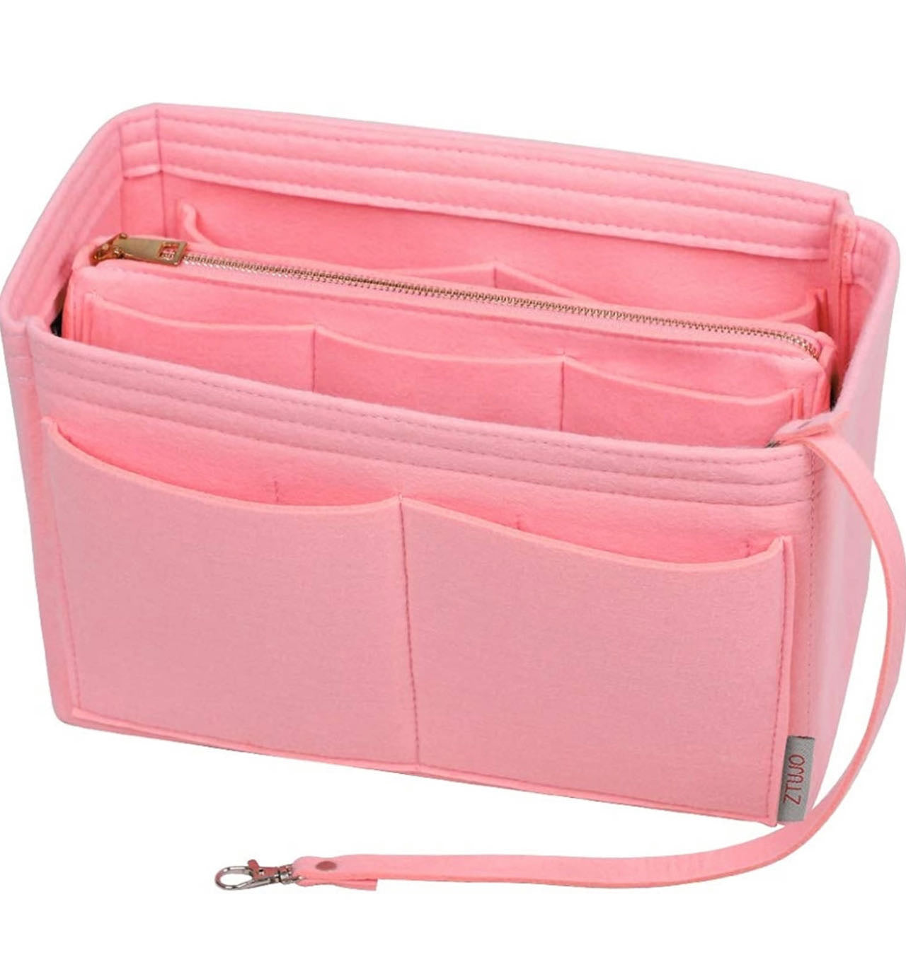 Purse Organizer Insert, with zipper, Handbag & Tote Shaper,Pink