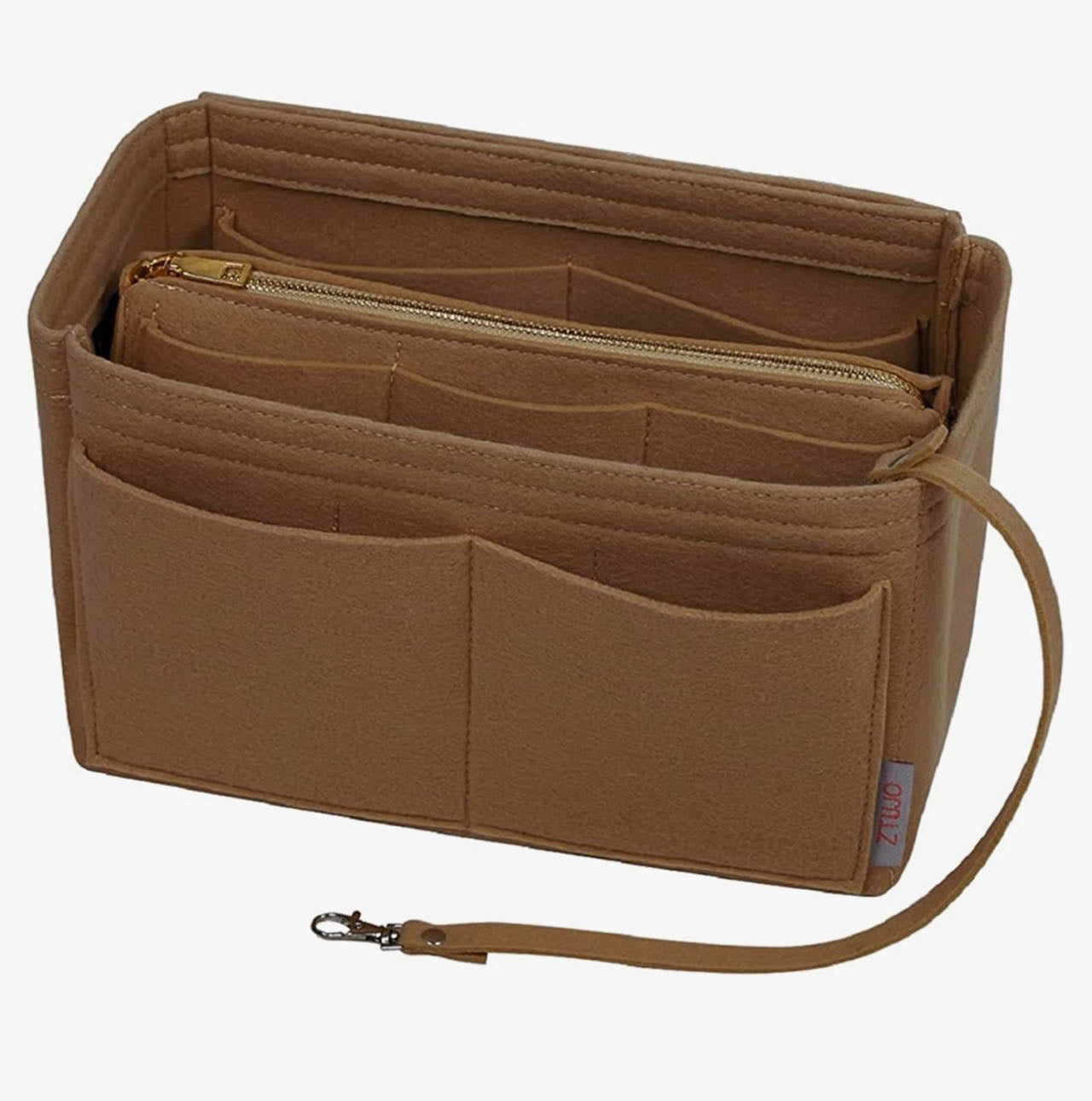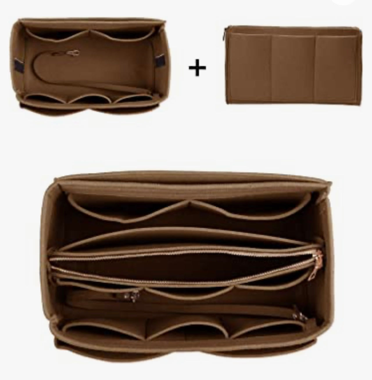 Purse Organizer Insert, with zipper, Handbag & Tote Shaper,Brown