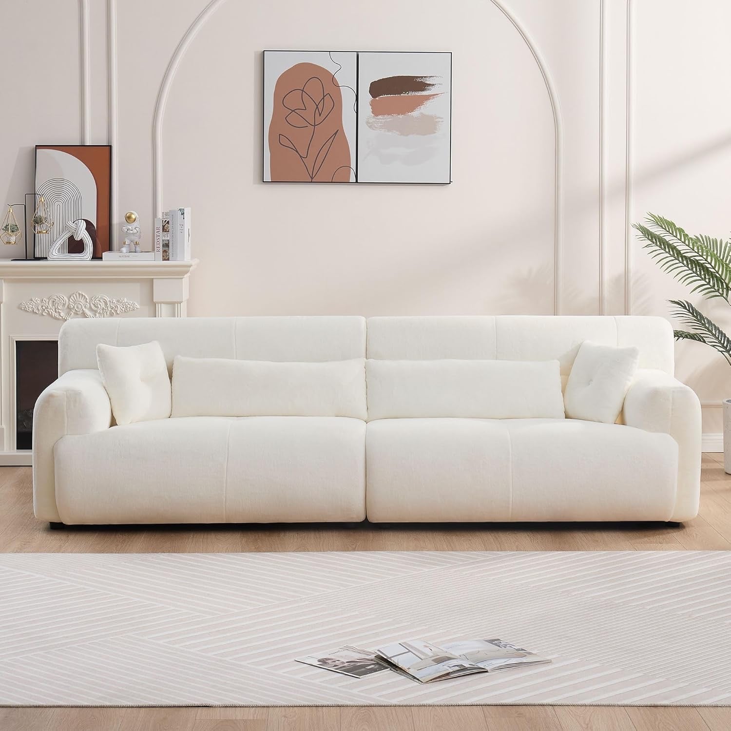 Sectional Sofa, 111.81'' Comfy Upholstered Sofa Ultra Soft Thick Fuzzy Faux Rabbit Fur Couch, Cute Cozy Plush Warm Fleece Fluffy Sectiona Sofa for Living Room, Beige