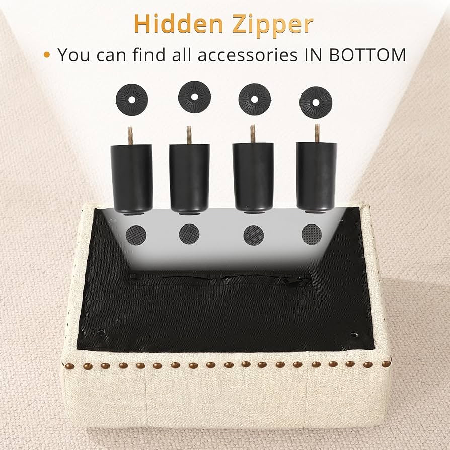 - 【HDDEN ZIPPER】❥❥❥❥❥The footstools ottoman has hidden zipper on bottom and you can find all accessories you need on bottomn. After Assemble it, it can be a small storage space for you and your kids to hide small stuffs, such as small toy, candy and receipt.