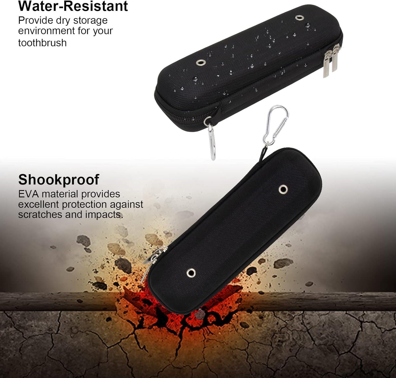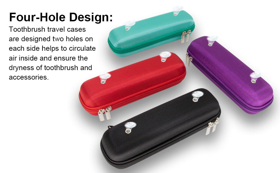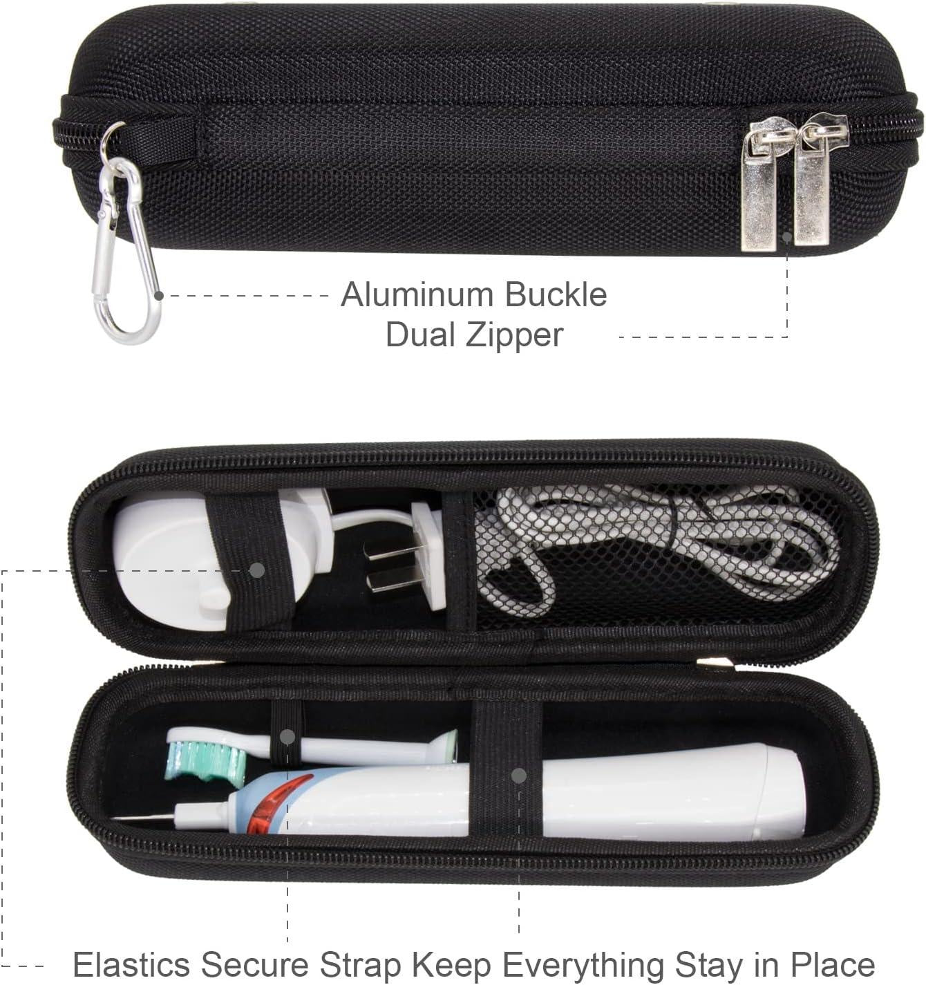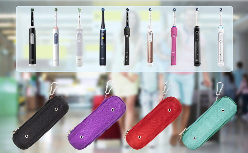 Wide Compatibility: electric toothbrush travel case compatible withral-B Pro 500/600/650/1000/1500/2000/3000/3500/5500/Pro-Health, Smart 1500/3000/5000, Vitality Dual Clean Genius X Limited/6000/7000/7500/8000/9600, iO Series 6/7G/ 7/8/ 9. Work well for Philips Sonicare DailyClean 1100 ProtectiveClean 4100/5100/6100/6500, ExpertClean750 and more. Reliable Material: The travel toothbrush case with 1680D outer material has bright colors and easy to clean. EVA material with anti-seismic, waterproof and dustproof to provides excellent protection against scratches impacts and dust. Carries Conveniently: The aluminum buckle allows you easy to attach to your backpacks or bags for business trip, travel, vacation. Dual zipper closure makes it quick access and management. Four-Hole Design: Our toothbrush travel cases are designed two holes on each side helps to circulate air inside and ensure the dryness of toothbrush and accessories. Everything Stay in Place: This toothbrush case have been separated positions for the charging base brush head and handle, which will not be disordered during the bumpy travel. The elastic band can be well fixed and easy to put in or take out.