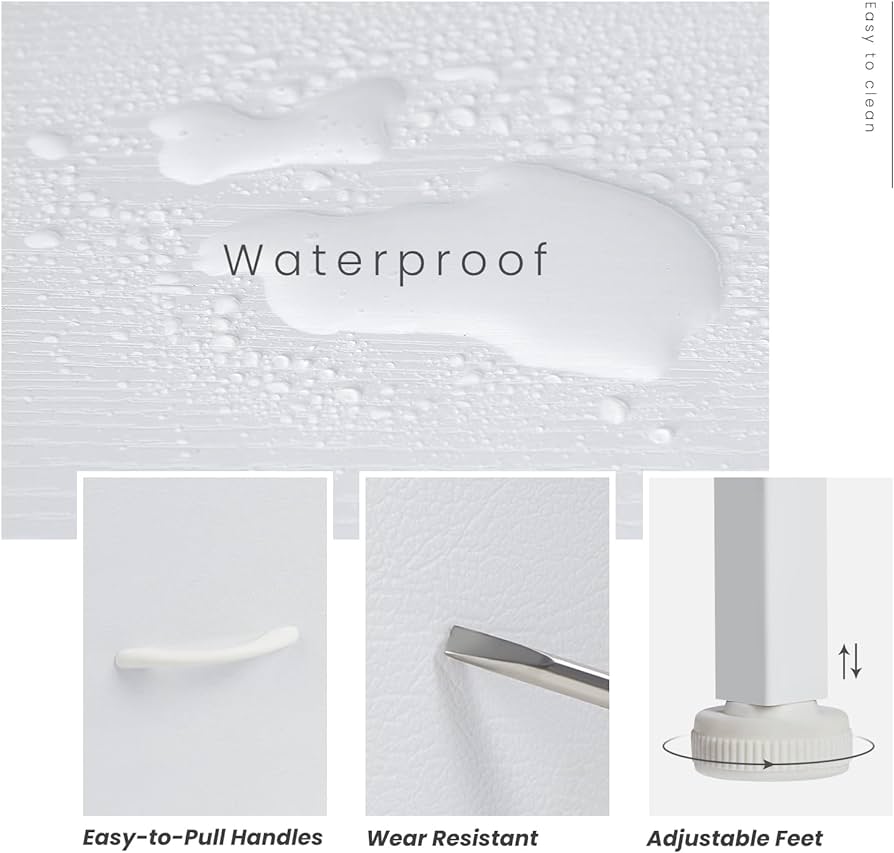 - Sturdy Frame: The high-quality metal frame extends the life of the chest of drawers while keeping the chest of drawers stable and sturdy at all times. With 4 height-adjustable feet to protect your floor from scratches, you can also adjust the balance of the chest of drawers in small areas. In addition, we added an additional auxiliary function that is fixed against the wall. You can attach the drawer dresser to your wall to prevent possible tilting and child climbing caused by terrain.