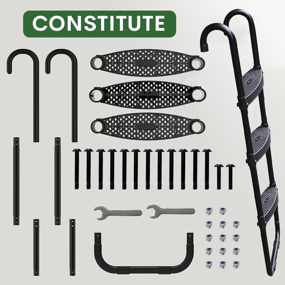 USA Universal Easy-to-Assemble Trampoline Ladder, 3 Steps with Wide Steps, Trampoline Storage Bag, 220 lbs Capacity Trampoline Accessories for Children Kids, Black