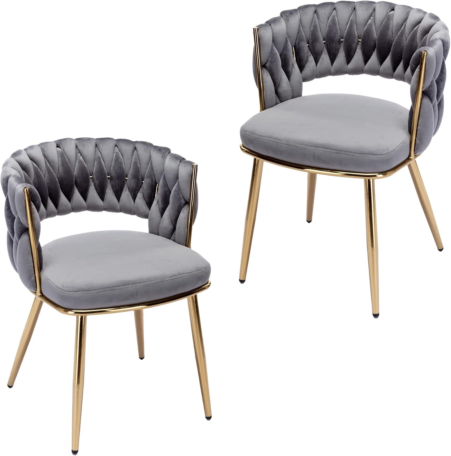 Velvet Dining Chairs Set of 2, Modern Side Chairs with Woven Back, Tufted Accent Chair with Comfortable Seat Sturdy Metal Golden Legs for Living Room, Kitchen, Bedroom, Light Grey