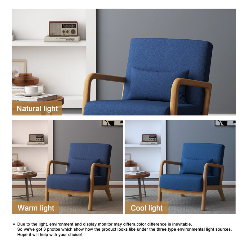Classic mid-century modern chair with arms, mid-century accent chair with back and seat cushion, which could mesh well with your existing home décor and the overall practical design. You can use the chair as a piece of versatile furniture by moving around your home as needed, including the living room, study room, balcony, etc. Firmly structured with solid wood as its legs and internal frame for added sturdiness and stability. With integral legs and armrests, a cushioned seat comfortably padded with high-density foam, when sitting on the living room chair, it is your nice life partner to relieve your whole day's tiredness. This living room chair comes in handy when you require a piece of functional and stylish furniture. You can sit on the armchairs to read books, drink coffee, watch movies, play games, and chat with friends.