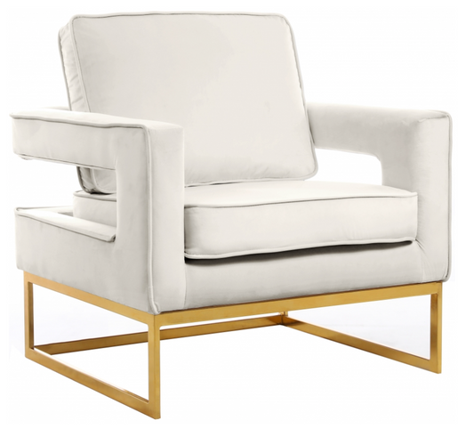 Noah Collection Modern Contemporary Velvet Upholstered Accent Chair with Durable Stainless Steel Base, Gold Base