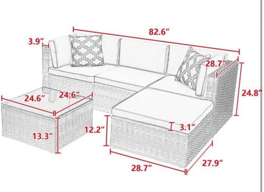 5Pcs Outdoor Garden Patio Furniture PE Rattan Wickerectional Cushioned Sofa Sets with 2 Pillows and Coffee Tablemodular sectional Sofa Sets with roof XI910, Navy Blue